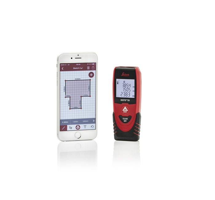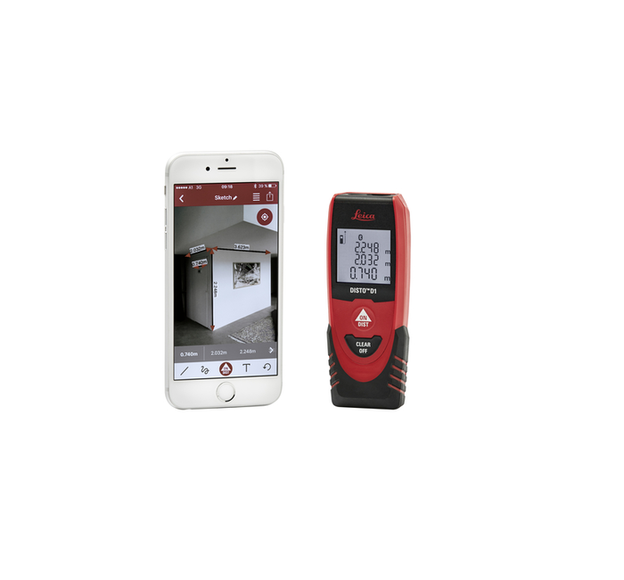 Leica DISTO D1 opens the world of professional laser measuring to anyone with an interior project. This lightweight and compact laser measurement tool has world-class Leica Geosystems know-how and offers professionals an easy-to-use, accurate measuring device. It eliminates the need for a ladder, saggy measuring tape, or an assistant and delivers 2 mm accuracy with just one button press, thereby saving time and reducing errors. By turning on Bluetooth®, it can be paired with any tablet or smartphone and used with the Leica DISTO Plan app to visualize and document measurements, increasing efficiency.