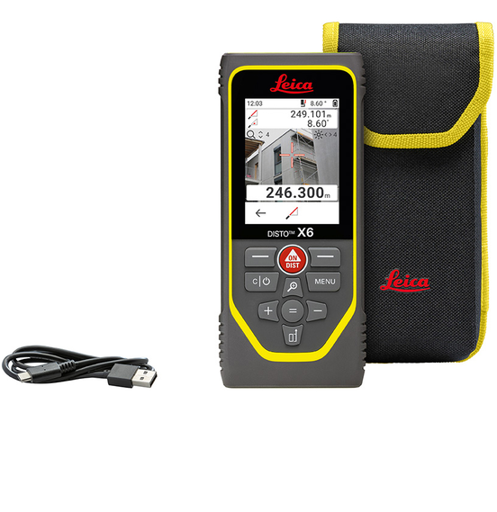 The Leica DISTO X6 is especially suitable for rough construction sites. With an IP65 rating, the extremely robust housing protects against dust and water jets and is drop tested from a height of 2 m, underlining the reliability and durability of this laser measure. With its Pointfinder and large, crystal-clear display, it is perfect for outdoor use. Simple and ergonomic operation is also guaranteed due to the touch screen and the additional measuring button on the side. In addition, a variety of measurement functions, such as Smart Horizontal Mode, height tracking, profile or angle measurements, ensure that any measurement situation can be completed quickly and efficiently. The results can be downloaded as a report and integrated directly, e.g. in quotations, ensuring an error-free, digital workflow.